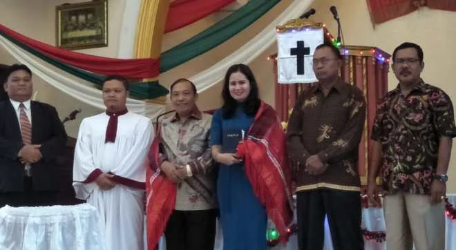 Asmadi Lubis SH. MKn beserta ibu Nyonya Tetty Panjaitan beserta sejumlah majelis Beribadah minggu (20/1) di gereja HKBP Gunung Sitoli Nias.