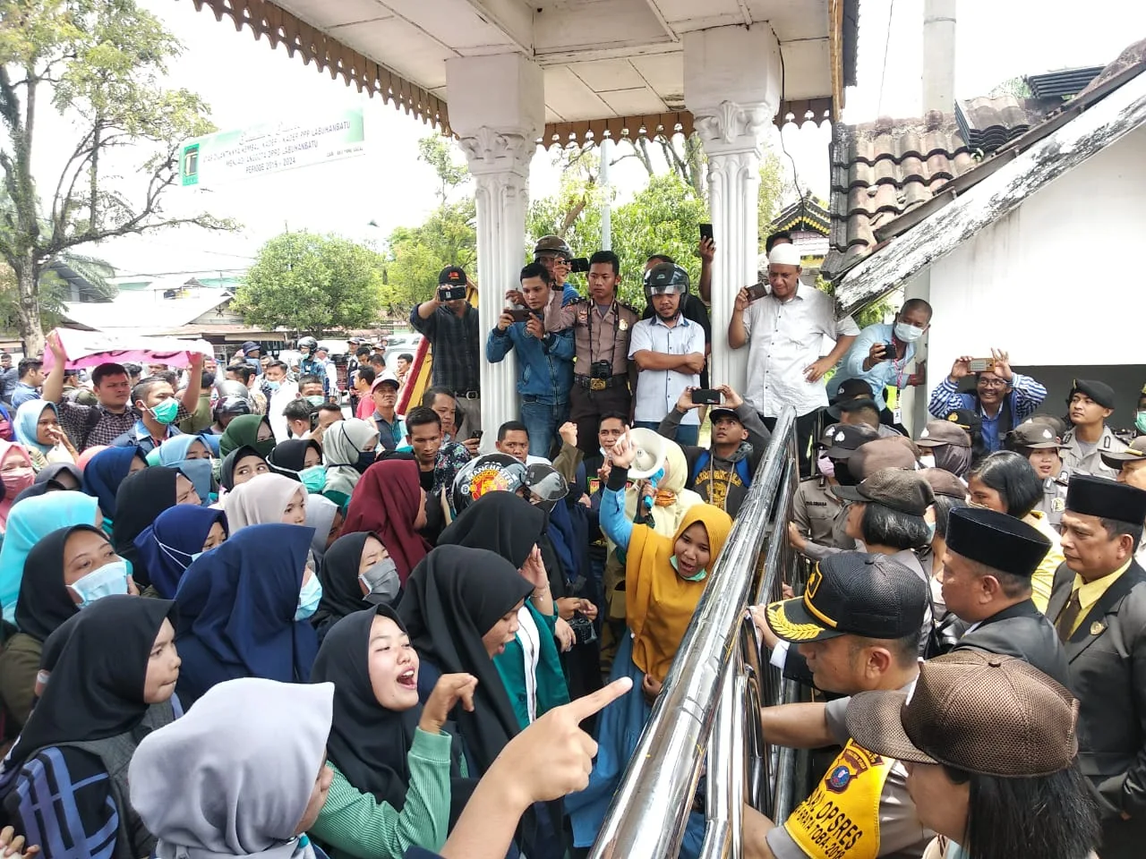 Dalam aksi itu, pengunjuk rasa merusak pagar kantor dewan yang terbuat besi berwarna perak dengan panjang sekira 10 meter dan tinggi 1,5 meter.