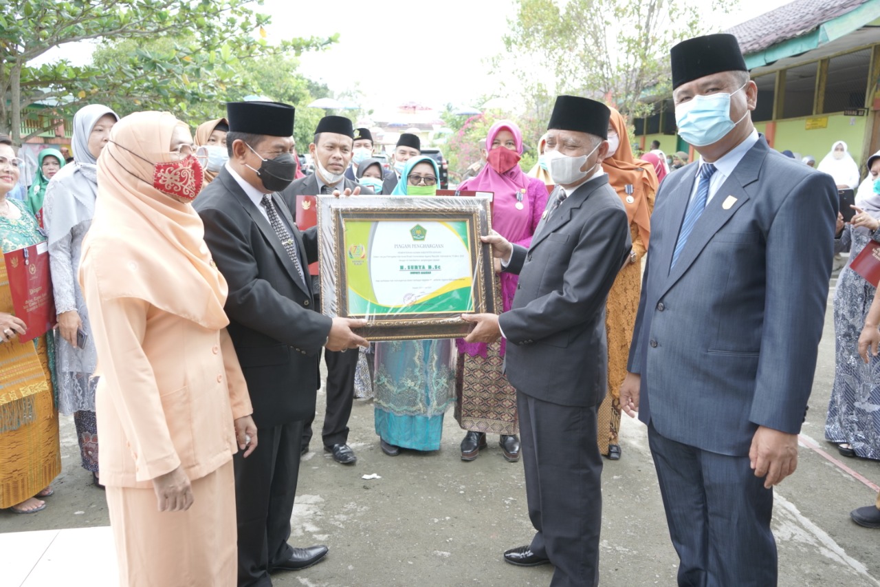 Bupati Asahan memimpin upacara hari Amal Bhakti Kementerian Agama ke-75 yang diselenggarakan di sekolah MTs Negri 1 Desa Rawang Lama, Kecamatan Rawang Panca Arga, Selasa (5/1/2021).