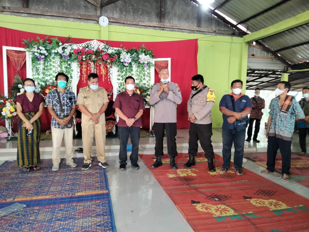 Salah satu tindakan yang dilakukan yaitu melaksanakan sambang dan memberikan himbauan kepada pesta pernikahan Daud dengan Carolina di Jambur Dusun ll desa Peria Ria tentang pencegahan penyebaran Covid 19 dan prosedur standart menuju adaptasi kebiasaan baru.