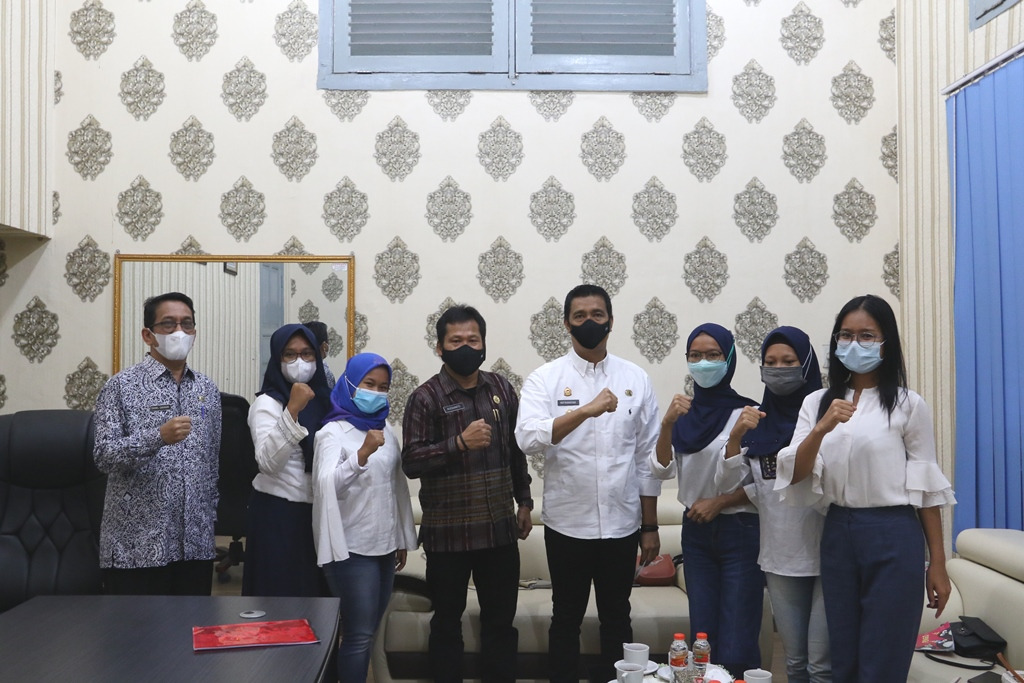 Wali Kota Pematangsiantar Dr H Hefriansyah, SE, MM menerima kedatangan adek - adek yang kreatif dari sanggar seni Sihoda di kantor Wali Kota Pematangsiantar, Kamis (29/07/2021).