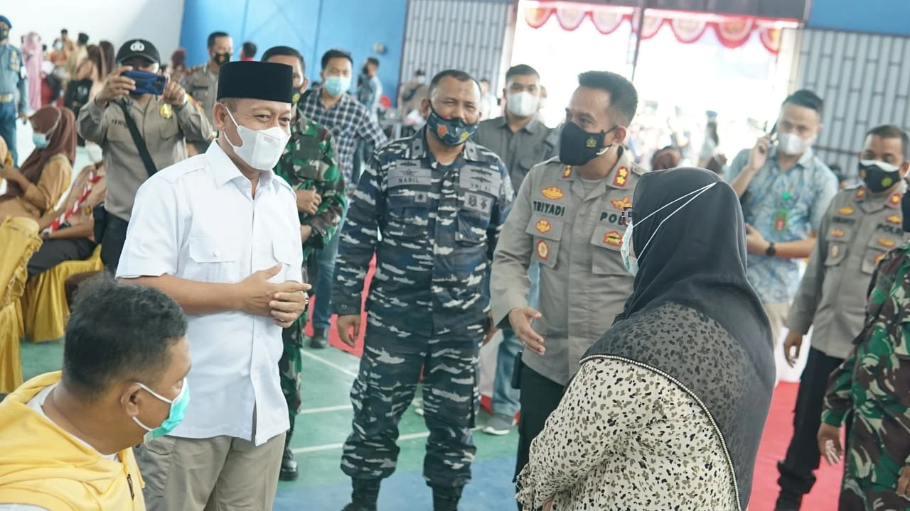 | Plt Wali Kota Tanjungbalai bersama Forkopimda Tanjungbalai meninjau pelaksanaan vaksinasi massal bagi pelajar yang dilaksanakan di GOR Mapolres Tanjungbalai, Jumat (17/9/2021). (Foto Mk/dok) |