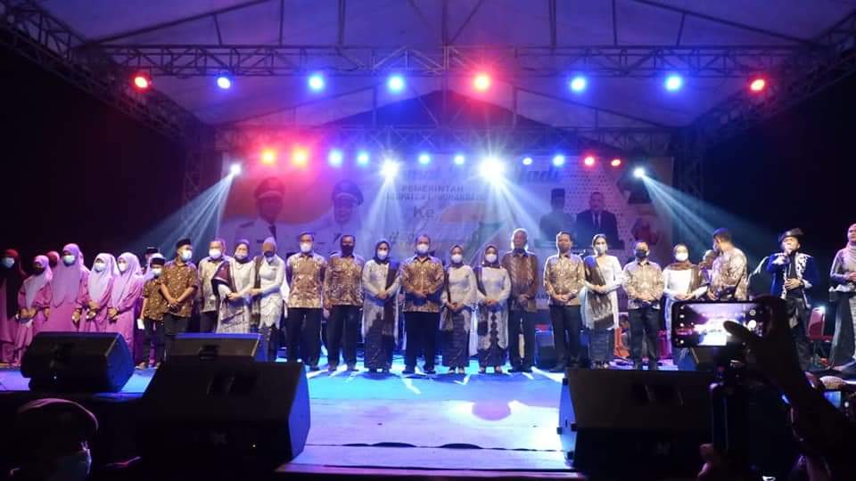 Bupati dr. H. Erik Adtrada Ritonga, M.KM dan Wakil Bupati Labuhanbatu Hj. Ellya Rosa Siregar, S.Pd, MM hadiri Malam Pesta HUT Labuhanbatu ke-76 yang sekaligus menjadi penutup rangkaian acara HUT Pemkab Labuhanbatu di Lapangan Eks Pasar Baru, Jl. Diponegoro, Rantau Utara, Minggu (17/10/2021).