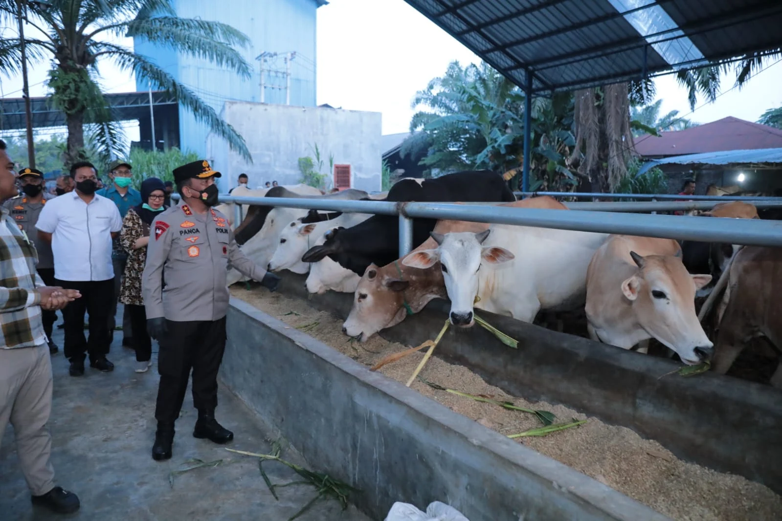 Kemudian, Irjen Pol Panca melihat langsung memastikan hewan-hewan ternak yang nantinya akan dikurbankan dalam kondisi sehat tidak tertular wabah penyakit kuku dan mulut (PMK).