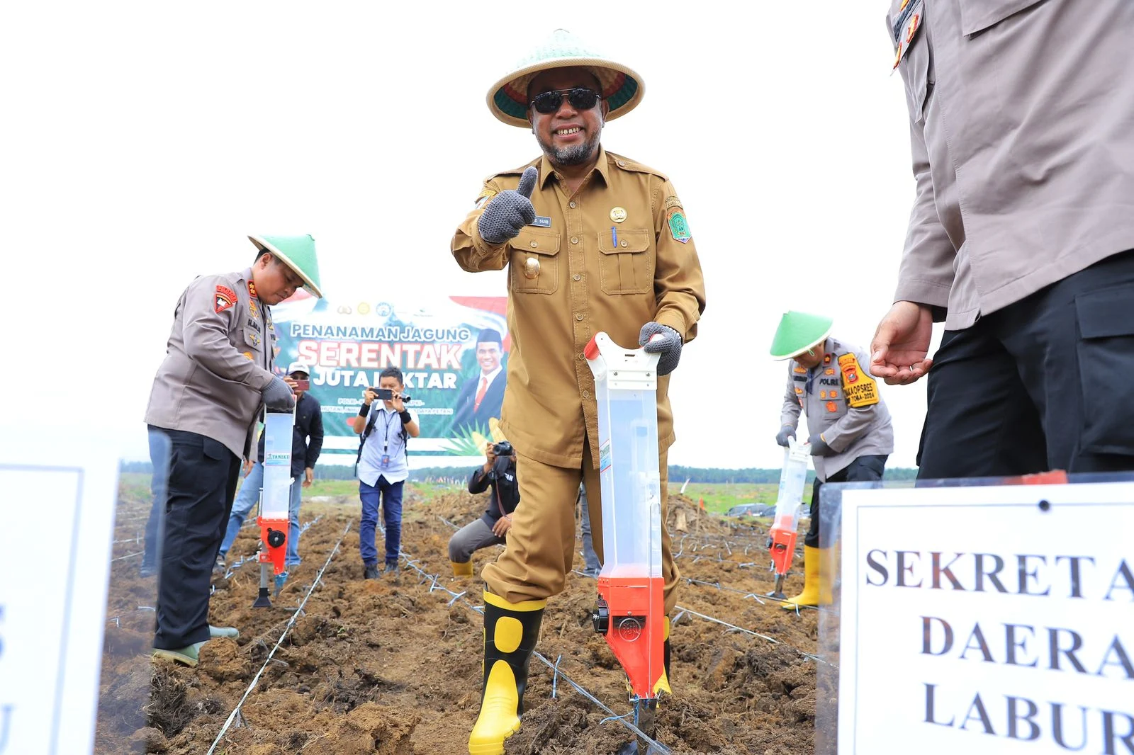 Bupati Labuhanbatu Utara Dr. Hendri Yanto Sitorus, S.E., M.M melalui Sekretaris Daerah (Sekda) Dr. H. Muhammad Suib, Spd, MM menghadiri acara Penanaman Jagung Serentak 1 Juta Hektar Se-Indonesia di Area Perkebunan PT. Smart Brussel Divisi III Desa Perkebunan Brussel Kecamatan Marbau, Selasa (21/01).